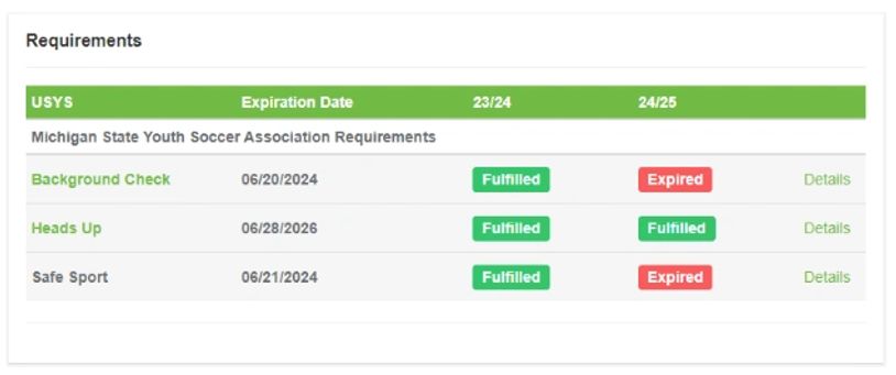 Another important task each coach and manager must complete after tryouts are the 3 requirements. These are in GotSport at the bottom of the screen after you select the “Dashboard” tab.
